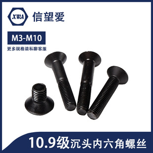 10.9级沉头内六角螺丝黑色高强度平头平杯螺栓钉M3M4M5M6M8M10
